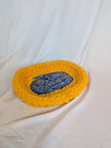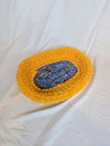 0 savesTreat your furry friend to the "Golden Nest" Pet Bed, a handmade oval-shaped retreat that’s equal parts cute and cozy. With a soft grey base framed by a cheerful yellow rim, this 18x13in bed offers the perfect blend of warmth, style, and comfort. Its compact oval design makes it a snug spot for small pets who love curling up in just the right-sized nook.