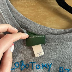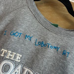 Hand embroidered Broadmoor sweatshirt that now reads “I got my lobotomy at The Broadmoor.” Size med. machine wash, gentle cycle. Includes s&h.