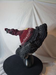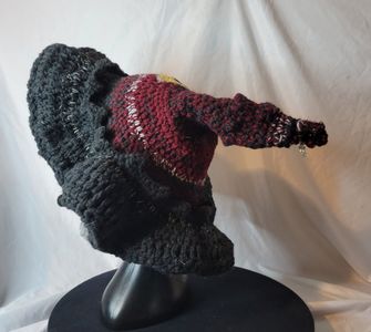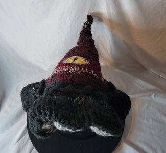 0 savesThis twisted witch/warlock hat is perfect for any cosplay. With its giant ominous eye and dragon/moon charms it would be perfect for the devious dungeon master. Great for any cosplay or larping event or just fun to wear!