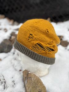 This is my most popular hat and is so fun to wear. Two hats in one with four ways to wear it. Each hat has their own unique “distressed” look. No two are alike.