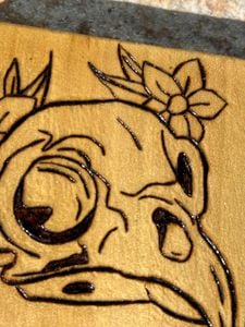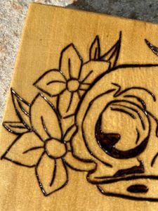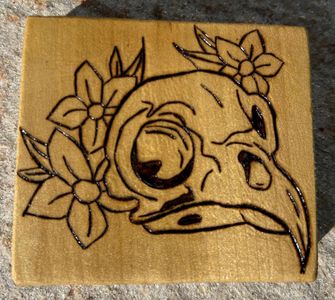 1 savesThis unique wood-burned art piece features a beautifully detailed raven skull surrounded by delicate flowers — a striking blend of gothic and natural beauty.
