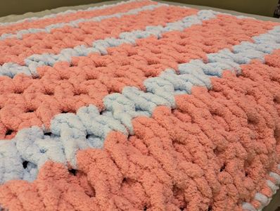 Wrap up in dreamy pastels with our Cotton Candy Clouds Blanket—hand-knit, ultra-soft, and purr-approved by Miss Midge! Chunky chenille polyester blend for maximum coziness. 40×50in. Perfect for gifting or keeping! 🧶💕