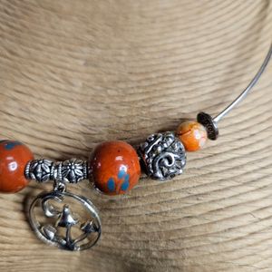 0 savesSilver Metal Mushroom Choker Collar Necklace. Orange Floral Ceramic Beads. Silver Filigree Beads. Mushroom and Moon Charm.