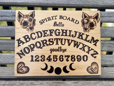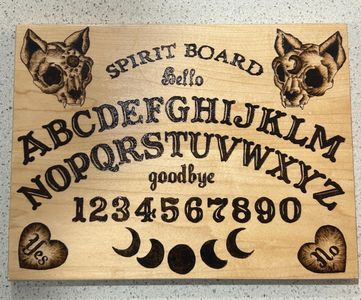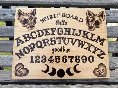 Hand Burned Spirit Board – Cat Skulls, Moon Phases, and Hearts This is my first-ever handmade spirit board, completely designed and burned by hand over the course of a week (40+ h...
