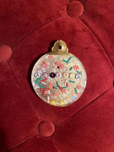 Flat, circle about the size of a large palm! Customization available! Got a name? City? Group? If you can spell it, I can make it!