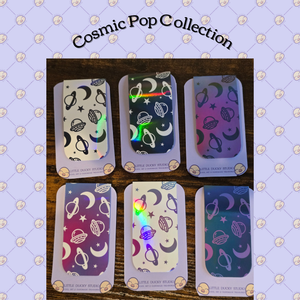 1 savesDiscover the enchanting Cosmic Pop Collection of holographic magnetic bookmarks, the perfect page markers for book lovers, planners, and journal enthusiasts. These whimsical space-themed bookmarks feature playful line art of moons, stars, planets, and UFOs, all brought to life with a vibrant rainbow holographic overlay that catches the light beautifully.