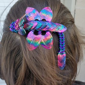 Instructions on how to make a chainmaille/scalemaille dragon barrette.
