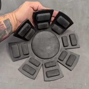 These are about 5/8” thick and roughly 11 inches in diameter. Cast in supple urethane foam rubber they provide nice padding without capturing sweat like open cell foam can. Designed to allow air to pass between your head and helmet if you have fans installed.