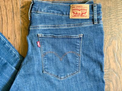 0 savesSuper-comfortable jeans with a flattering skinny leg Made to flatter your figure and celebrate your form Designed with a built-in tummy panel that flatters, smooths and supports Authentic denim character enhanced with supersoft stretch. For jeans that'll leave you starry-eyed. That's Levi's® Stellar Stretch. Thanks to excellent built-in recovery, they champion your curves and move with you—without sagging or bagging—everywhere and every wear. Midrise, 30” inseam, 33” waist, dark wash, lightly worn