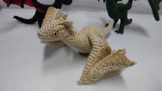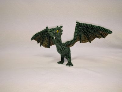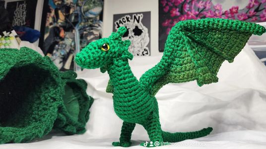 3 savesEnter a realm of magical delight with our Mystical Hatchlings crochet dragon and egg sets! Lovingly handcrafted to ignite the imagination, each set features a meticulously crocheted dragon with a personality all its own, nestled within a cozy, textured egg. Our current collection offers the choice between the regal Cream and Gold, the mysterious Black and Red, or the majestic Green and Gold color schemes. Standing at an impressive 11 inches tall when perched atop its egg, these dragons are designed for display with a 7-inch stature and a wingspan stretching a full 10 inches. Each set is not only a captivating piece of art but also a whimsical toy; the egg serves as a secret chamber for the dragon to be safely tucked away. The wings are not just for show; they contain a flexible wire frame, allowing for dynamic posing and ensuring that your dragon stands proudly on its own. These are perfect for both collectors and dreamers alike, ready to add a touch of enchantment to any room.