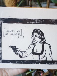 We draw the design onto a linocut block. Hand-carve the design, and individually stamp each print in 5x7" paper using water-based ink.