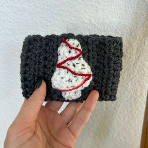 Handmade coffee cozy with a classic Christmas tree cake. Perfect teacher gift. Includes s&h. Vintage button closure.