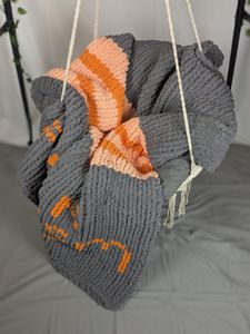Bold resistance! “Fk Fascism” Blanket** delivers a powerful message in grey/orange. 50×70in, ultra-soft chenille - for activists who value comfort & courage. **Disclaimer: this blanket unfortunately has some minor sun bleaching, so I have discounted it for the damage, it's still fully functional and beautiful.**