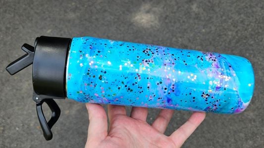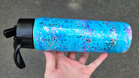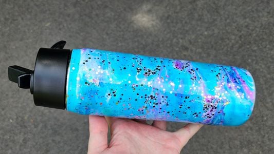 0 savesIt's a hot mermaid summer, and those vibes are encapsulated perfectly in this water bottle. The varying colors of glitter are reminiscent of what I think mermaid scales would look like. that combined with the swirls of blue, teal, and purple make this ideal for any lover of mermaids.