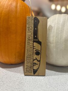 Michael Myers – Hand Burned Horror Wood Art (10x3”) Silent, haunting, and iconic — this Michael Myers piece captures the fear and stillness of Halloween. Featuring a memorable quo...
