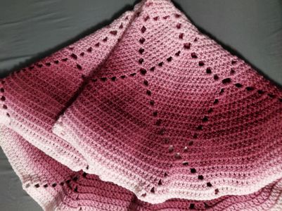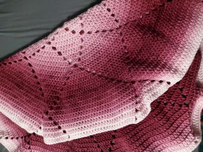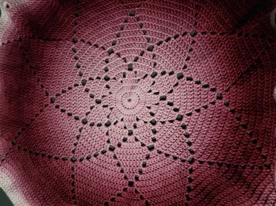 Crochet ombre mandala flower baby blanket. Maroon and white in color. Measures 3.5ft by 3.5ft.