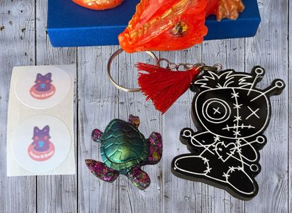 Love a little mystery? These Sangue Di Drago Creations Mystery Bags are packed with handcrafted resin artwork, spooky surprises, and exclusive collectibles! Each bag is a unique mix of eerie and adorable, featuring mini resin dragons, cryptid critters, charms, stickers, and more—curated for lovers of the creepy, cute, and everything in between.