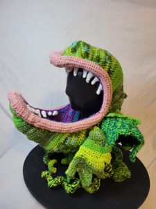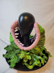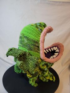 0 savesThis giant man eating plant is perfect for any cosplay! Great to wear going to see your favorite play or movie this fun unique neckwarmer/hat is perfect for any season. Made with acrylic yarn it is sure to turn heads!