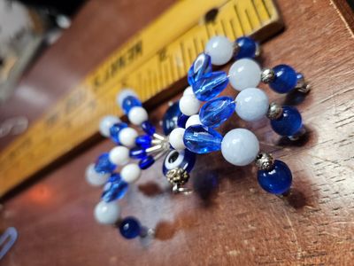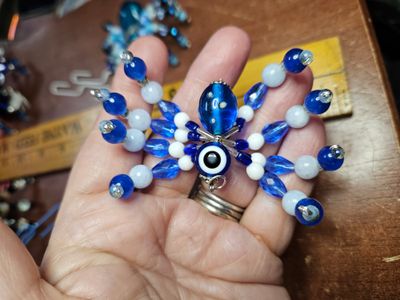Vintage Glass Beaded Spider 3" Protection Eye Blue and White Glass and Crystal Beads