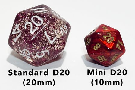 Features a twist-off base for dice storage, and includes 2 full sets of 7 mini (10mm) dice and an extra bonus d20!