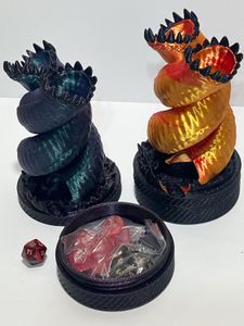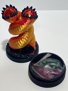 0 savesLevel up your game nights with this Double Worm mini dice roller! Features a twist-off base for dice storage, and includes 2 full sets of 7 mini (10mm) dice and an extra bonus d20!! Dice set colors will vary.