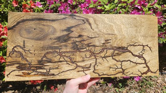 Fractal wood burning is the process through which electricity is used to create free-form designs that are burned into the wood as the electricity passes through it. Once the piece...