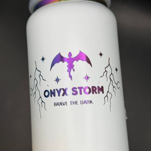 Onyx Storm Design "Brave The Storm" White Beer Mug Tumbler with engraved rainbow underlay