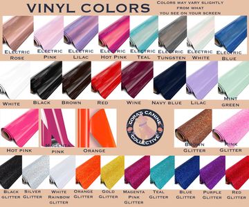 While the Biothane® base is waterproof, odor-resistant, and built for long-term durability, the heat transfer vinyl (HTV) accents are decorative and may not hold up to rough play, heavy daily use, or high-friction activities. We recommend these collars for light, supervised wear to maintain their look and longevity.