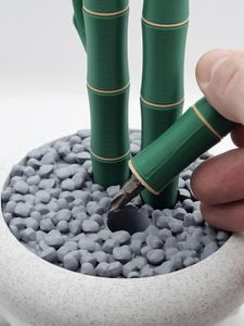 0 savesThis is no ordinary set of bamboo shoots—it's a clever fusion of nature-inspired design and everyday functionality! Meet the Bamboo Buddy, a stylish tool kit disguised as a cluster of vibrant green bamboo. Nestled in a sleek, textured base adorned with smooth gray pebbles, this kit is the perfect blend of elegance and practicality.