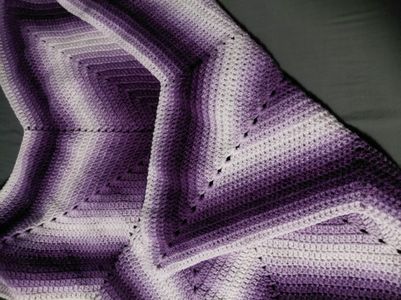 Crochet ombre star baby blanket. Purple and white in color. Measures 3.5ft by 3.5ft (one tip to the opposite tip).