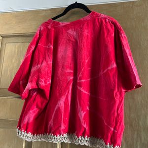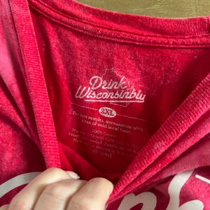 Drink Wisconsinbly crop top. Red shirt has been bleached, cropped, and has crochet trim added to it for a one of a kind flirty look. All done by hand by me. Machine washable, gentle cycle. Includes s&h.