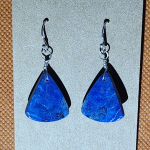 0 savesLapis cabochons with sterling silver link and earring wires. With a 1 inch dangle.