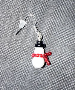 White Snowman w/ Red Scarf Dangle Earrings. On silver earring hooks.