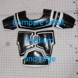 All armor is Vacformed in .093 ABS plastic available in black or white (will ship in either or if not specified). Chest armor available in small, medium or large. All other armor is one size fits most and can be trimmer to fit smaller Vode