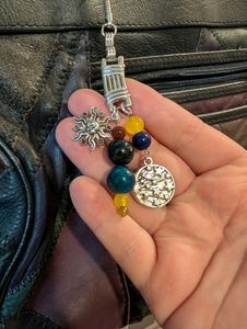 0 savesQuartz bead bag charm with sun and moon silver charms