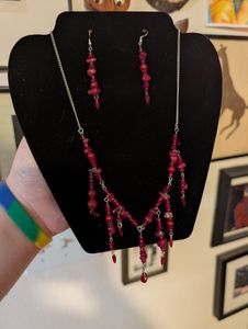 0 savesGlass and dyed quartz necklace and earrings perfect addition for any bloody Halloween costume