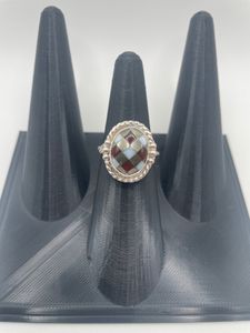 This stunning handmade ring features a mesmerizing inlay of onyx, white opal, and pyrite, meticulously set in argentium silver. The checkerboard pattern catches the light beautifully, blending deep burgundy, shimmering white, and metallic tones into a timeless statement piece. The handcrafted silver setting adds texture and balance, giving the ring a refined yet earthy feel.