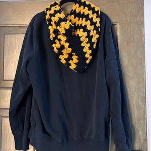 Iowa Hawkeyes sweatshirt with crochet hood. One of a kind game day fit! Nike large, crochet done by me. Includes s&h. Machine washable, gentle cycle.