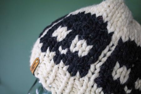 One size fits most adults and teens. 80/20% acrylic/wool blend. Machine wash cold, lay flat to dry.