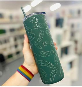 This pickle 20 oz tumbler with lid & straw is the perfect skinny tumbler! The design is laser engraved on a stainless steel insulated travel mug. This stainless steel tumbler is ...