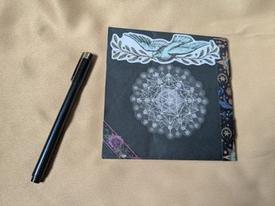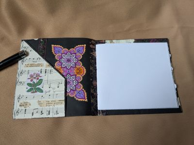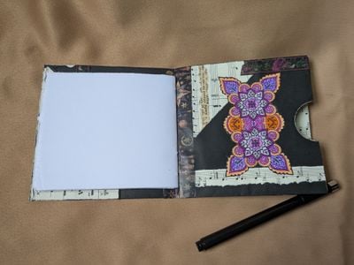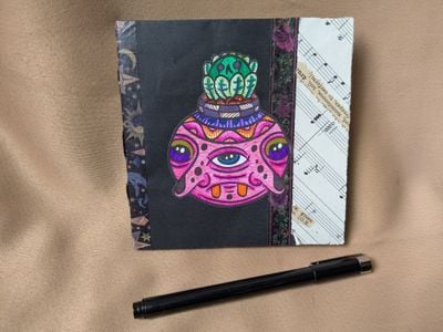 Chaotic/ Garden Theme, decorated by hand with paper crafts, stickers and washi tape. 48 stitched in pages with tourn edges. Front slip pocket and back pouch pocket. (5'' x 5'')