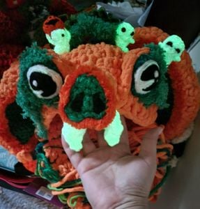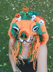 3 savesThis unique one of a kind bat hat is perfect for the Halloween lover! With little glow in the dark ghosties, and an assortment of details this hat is sure to bring a smile to anyone's face.