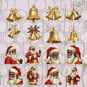 Materials: PNG files,Digital download,Transparent,300 DPI,Printable art,Holiday clipart,Scrapbook kit,DIY crafting,Commercial use,Boho Christmas,African Santa,Digital stamps,Festive designs