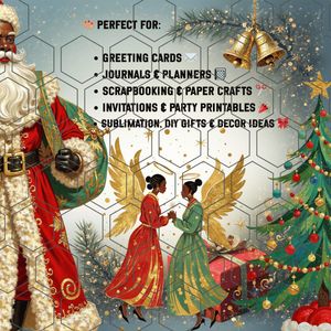 Bring warmth and diversity to your holiday projects with this Soulful Christmas Clip Art set! Featuring a stunning African American Santa, festive ornaments, angels, and holiday decor, these 300 DPI transparent PNGs are perfect for:
