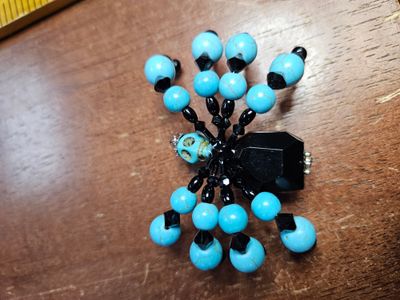 Vintage Glass Beaded Spider 3" Turquoise Skull Black