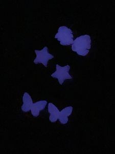 0 savesKawaii glow in the dark handmade resin stud earrings in the shape of stars, monstera leaves or butterflies.