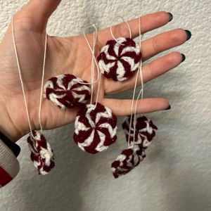 0 savesSet of six handmade peppermint ornaments. Cute sparkly crochet. Lightweight and great for gift toppers. Includes s&h.