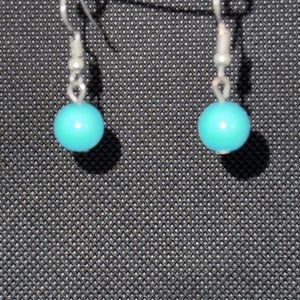 0 savesLight Blue Sphere Dangle Earrings on silver wire & hooks.