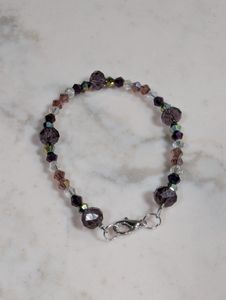0 savesThis bracelet is a perfect gift for that special someone or even yourself. It is handmade with faceted purple and clear glass beads, at 7 inches.