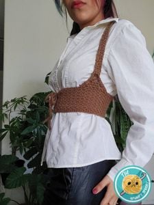 Make your cottagecore dreams come true with the Crochet Corset. This corset makes any casual outfit automatically more elaborate. Accentuating your curves and adding a pop of color. Match it with a button up, a long t-shirt, a sundress, the possibilities are endless!